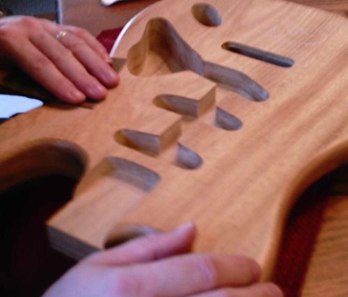 Wood work, routing, sanding start the creation as we work with all types of luthier grade wood such as basswood, maple, rosewood, swamp ash, and alder.